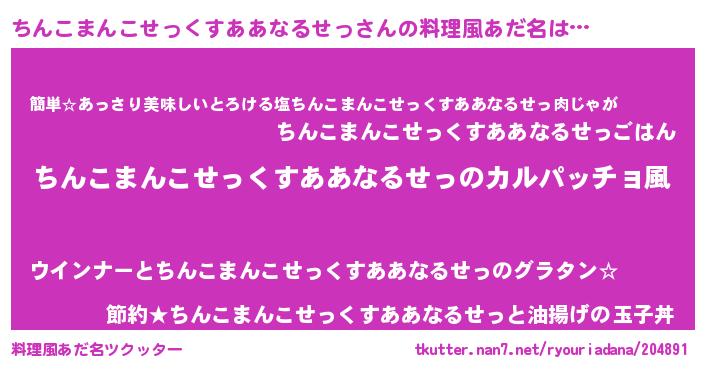 | ヘコむあだ名 | 『ちんこまんこせっくすああなるせっ(笑)』 |