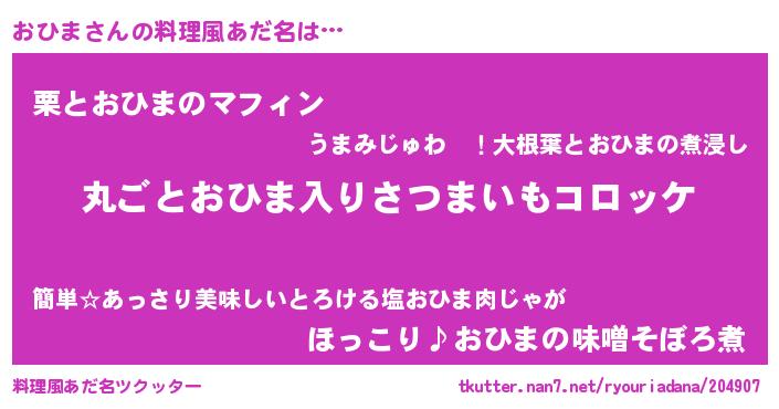 | 男性向けラノベタイトル風あだ名 | 『魔弾の王とおひま』『おひまの憂鬱』 |