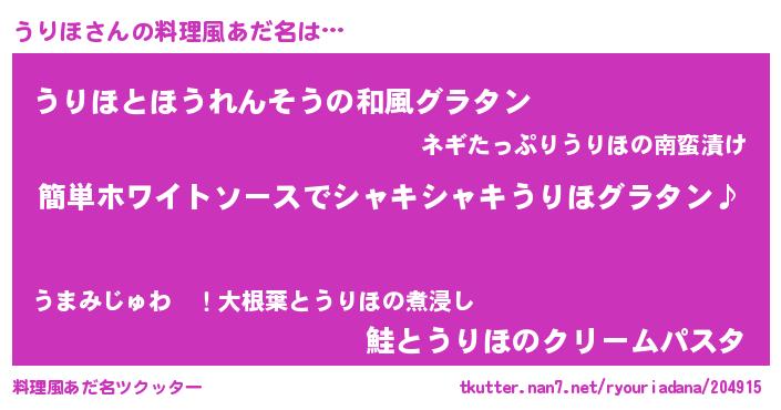 | 女子向けラノベタイトル風あだ名 | 『うりほ様がみてる』『死神うりほの再婚』 |