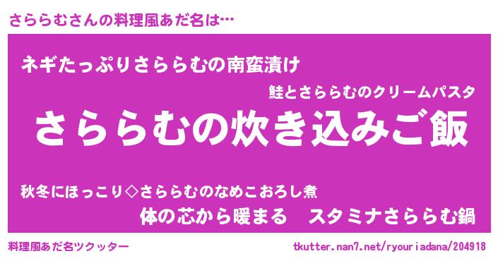 | 欧米人風あだ名 | 『さららむ・ステッグマイヤー』 |