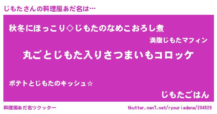 | 意味不明あだ名 | 『住所不定無職じもた(43歳)』 |
