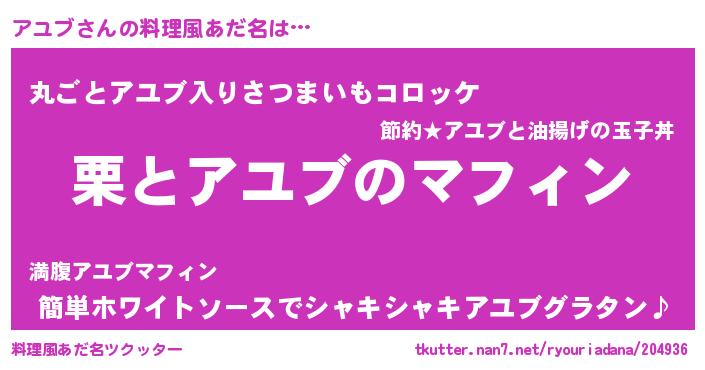 | ポケモン風あだ名 | 『アユゴンZ』『アーユイ』『ヒアユブ』 |