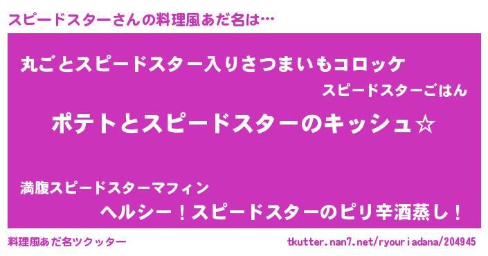 | 胡散臭い通販商品みたいなあだ名 | 『伝統あるサプリメント…その名も「スピードスター」』 |