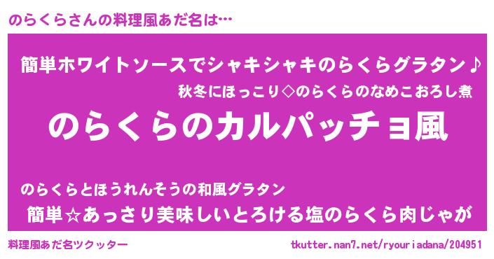 | ヘコむあだ名 | 『のらっちょ』『のらくら(爆)』 |