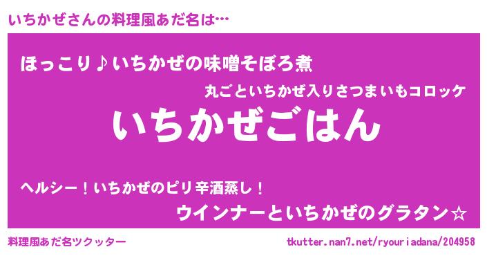 | 男性向けラノベタイトル風あだ名 | 『イチカゼスレイヤー』『いちかぜの憂鬱』 |