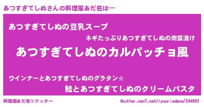 | ピコ太郎風あだ名 | 『アツ十郎』『アア太郎』『アコ次郎』 |