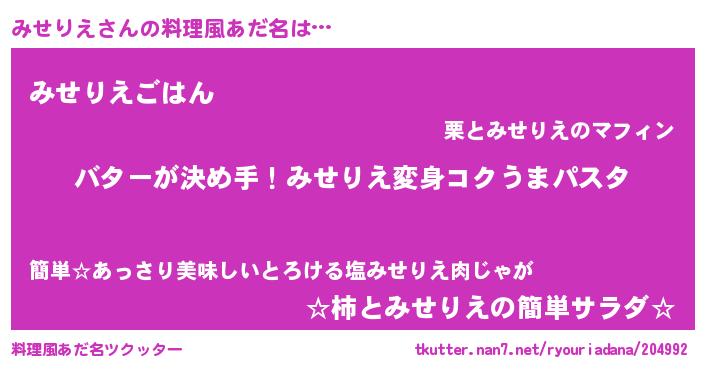 | 可愛いあだ名 | 『みせちゅっちゅ』『みせぷりん』 |