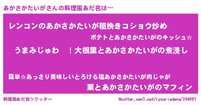 | 欧米人風あだ名 | 『あかさかたいがクリステル』 |
