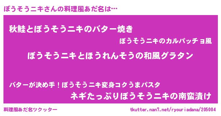 意味不明あだ名 | 『つくし科ぼうそうニキ属』 |