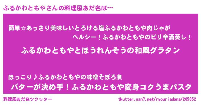 | ヘコむあだ名 | 『ふるかわともや(笑)』『ふるにゅー』 |