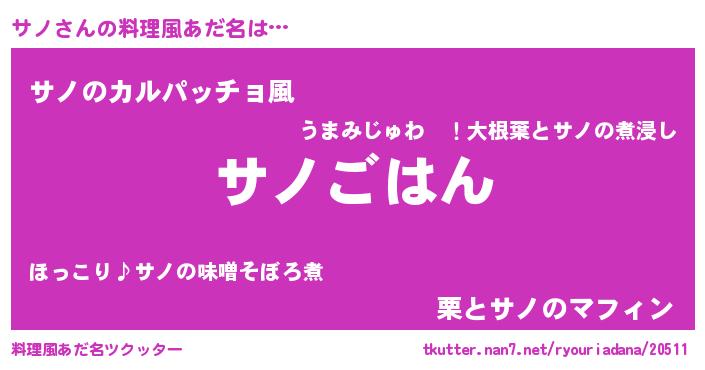| 男性向けラノベタイトル風あだ名 | 『サノスレイヤー』『魔弾の王とサノ』 |