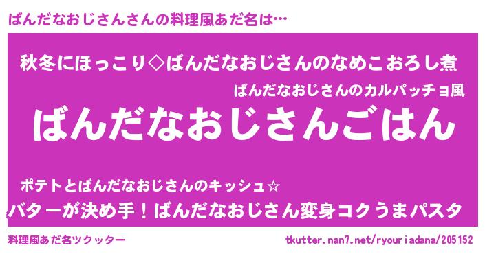 | ヘコむあだ名 | 『ばんっちょ』『ばんだなおじさん(笑)』 |
