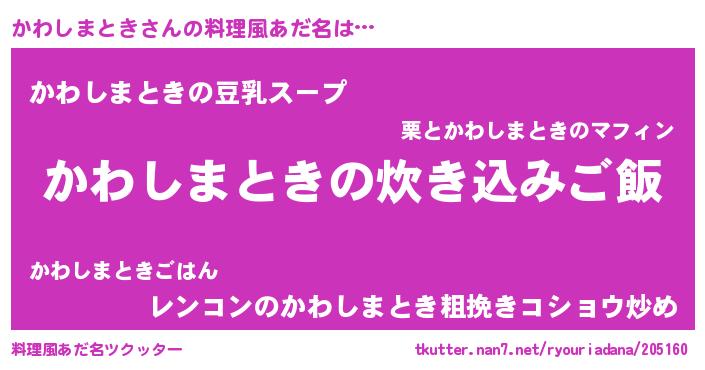 | ヘコむあだ名 | 『かわっぺ』『かわしまとき(震え声)』 |