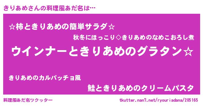 | ヘコむあだ名 | 『豆乳』『きりあめ(笑)』『きりお』 |
