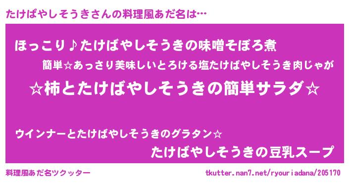 | 胡散臭い通販商品みたいなあだ名 | 『必ず成功するブレスレット…その名も「たけばやしそうき」』 |