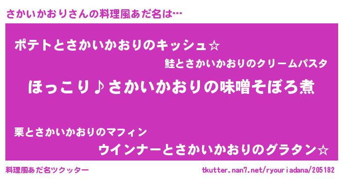 | ヒーロー風カッコイイあだ名 | 『スーパーサカイカオリ』『銀牙騎士サカ』 |