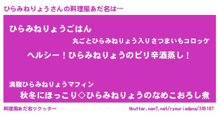 | 意味不明あだ名 | 『自称ひらみねりょう』 |