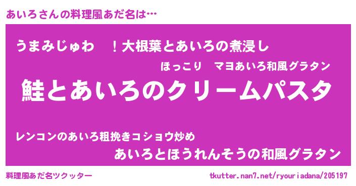 | 意味不明あだ名 | 『眠気覚ましガムあいろ味』『自称あいろ』 |