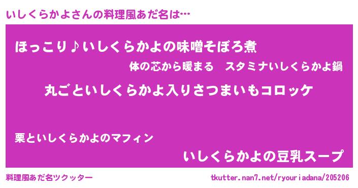 | 男性向けラノベタイトル風あだ名 | 『この素晴らしい世界にいしくらかよを!』 |