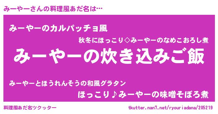 | 意味不明あだ名 | 『住所不定無職みーやー(95歳)』 |