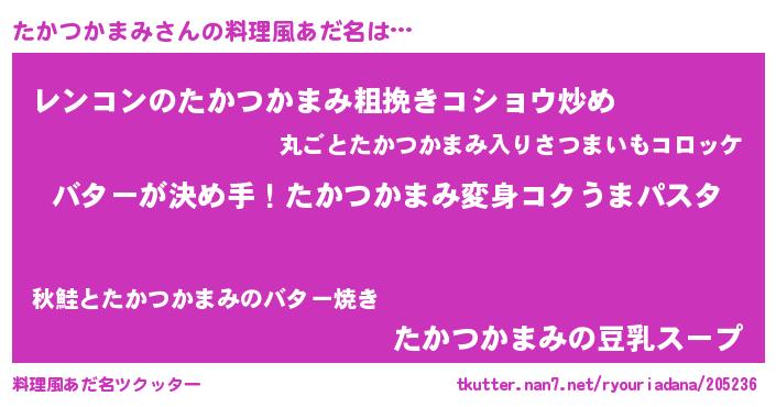 | ヘコむあだ名 | 『たかぷりん』『たかつかまみ(爆)』 |