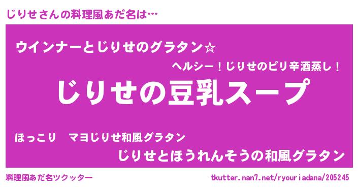 | 意味不明あだ名 | 『とにかく怪しいじりせ』『自称じりせ』 |