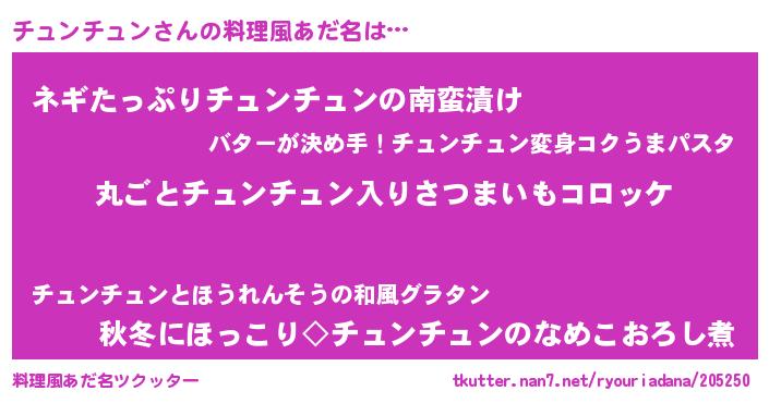 | 意味不明あだ名 | 『住所不定無職チュンチュン(79歳)』 |