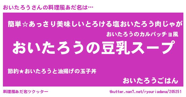 | 意味不明あだ名 | 『とにかく怪しいおいたろう』 |