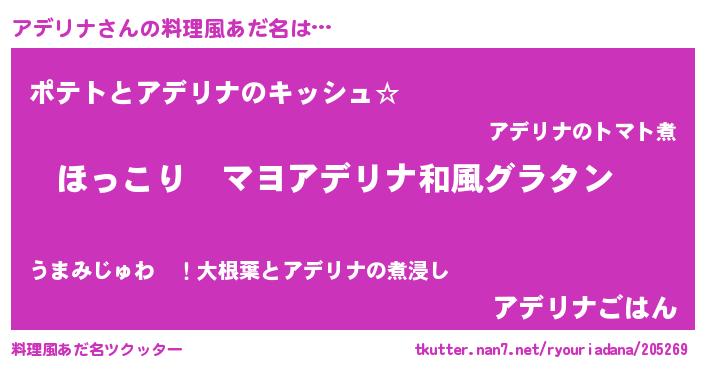 | ヘコむあだ名 | 『アデっぺ』『豆乳』『アデリナ(爆)』 |
