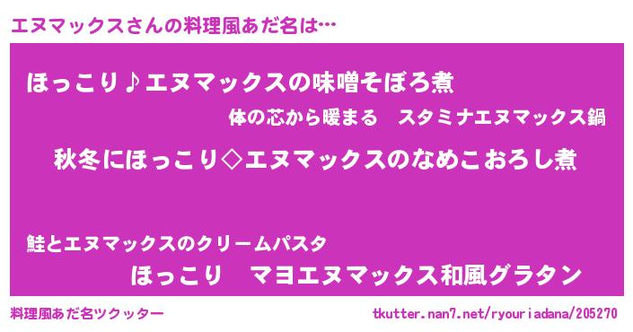 | 男性向けラノベタイトル風あだ名 | 『エヌマックスに滅ぼされるだけの簡単なお仕事です』 |