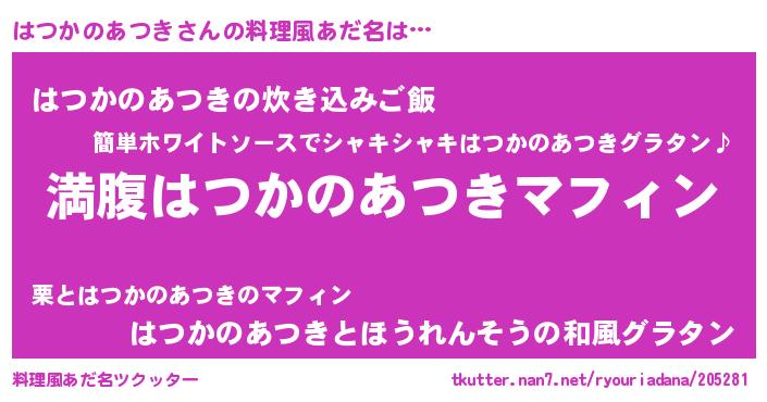 | ヘコむあだ名 | 『はつかのあつき(爆)』『はつお』 |