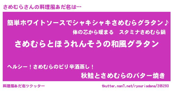 | 意味不明あだ名 | 『ニラ科さめむら属』『永久保存さめむら』 |