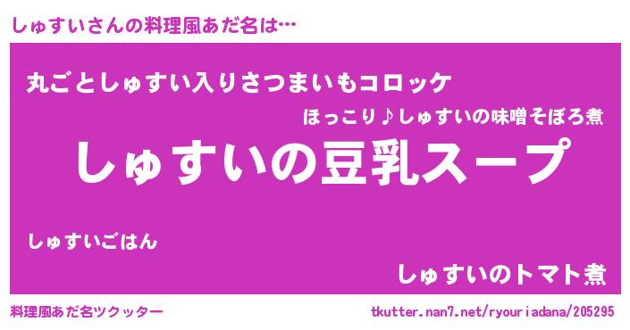 | 意味不明あだ名 | 『とにかく怪しいしゅすい』 |