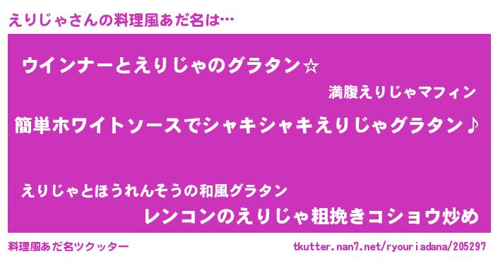 | 男性向けラノベタイトル風あだ名 | 『えりじゃの嫁は女の子じゃないと思った?』 |