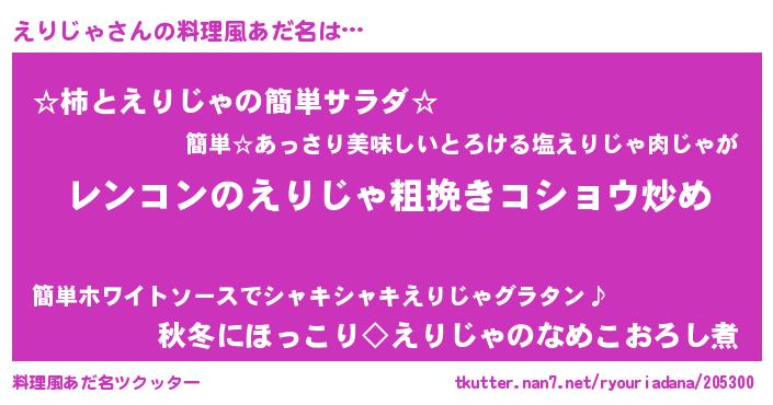 | 意味不明あだ名 | 『自称えりじゃ』『永久保存えりじゃ』 |