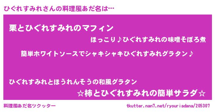 | 男性向けラノベタイトル風あだ名 | 『ひぐれすみれの嫁は女の子じゃないと思った?』 |