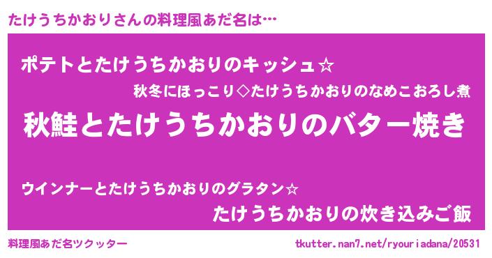| ヘコむあだ名 | 『たけうちかおり(震え声)』『たけっぺ』 |