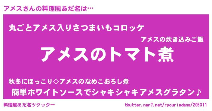 | ヘコむあだ名 | 『アメっ子』『アメふぇ~』 |