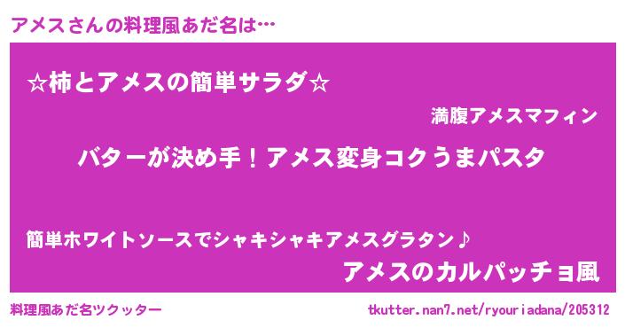 | 女子向けラノベタイトル風あだ名 | 『アメス恋絵巻』『アメス様がみてる』 |