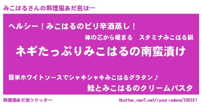 | 胡散臭い通販商品みたいなあだ名 | 『億万長者になれるブレスレット…その名も「みこはる」』 |
