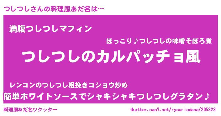 | 意味不明あだ名 | 『住所不定無職つしつし(41歳)』 |