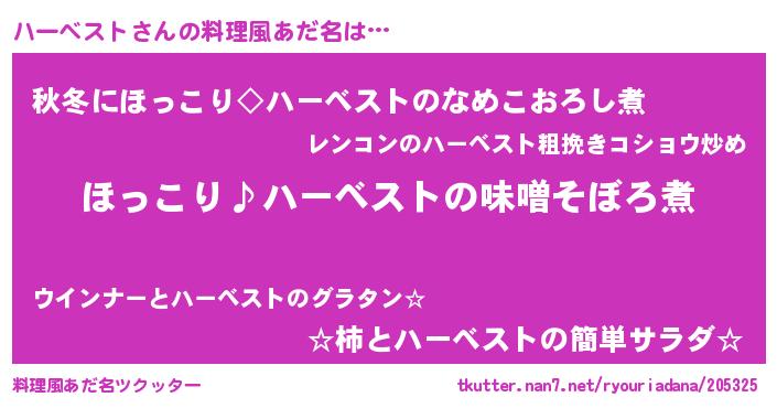 | 恥ずかしいあだ名 | 『プリティーハーベスト』『ハーっちょ』 |