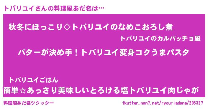 | ヒーロー風カッコイイあだ名 | 『愛の使者トバリユイ』『ネオトバリユイ』 |