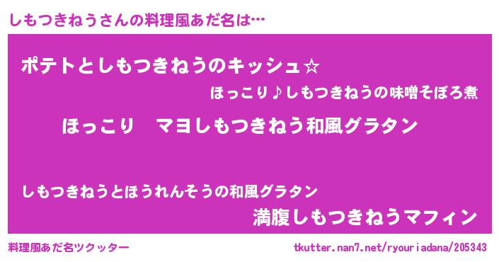 | ヘコむあだ名 | 『しもっぺ』『しもつきねう(震え声)』 |