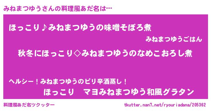 | ヘコむあだ名 | 『みねにゅー』『つくし』 |