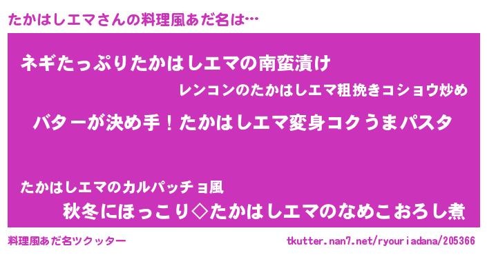 | 男性向けラノベタイトル風あだ名 | 『おまえをオタクにしてやるから、俺をたかはしエマにしてくれ! 』 |