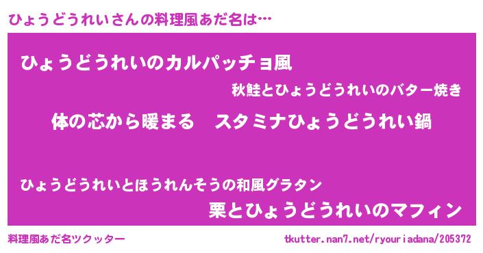 | 意味不明あだ名 | 『ひょうどうれいフォーエバー』 |