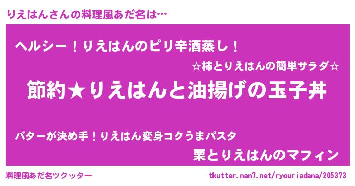 | 意味不明あだ名 | 『ペロリンりえはん』『自称りえはん』 |