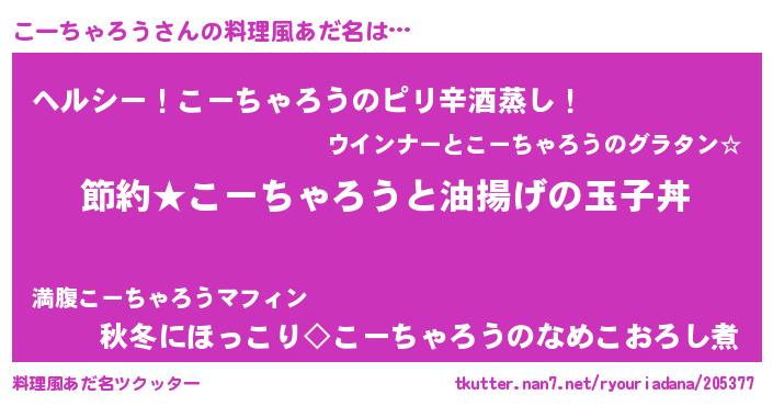 | 男性向けラノベタイトル風あだ名 | 『こーちゃろうの憂鬱』 |