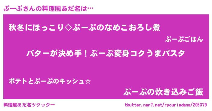 | ヘコむあだ名 | 『ぷーっ子』『ぷーっふぃ~』 |